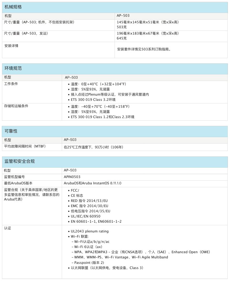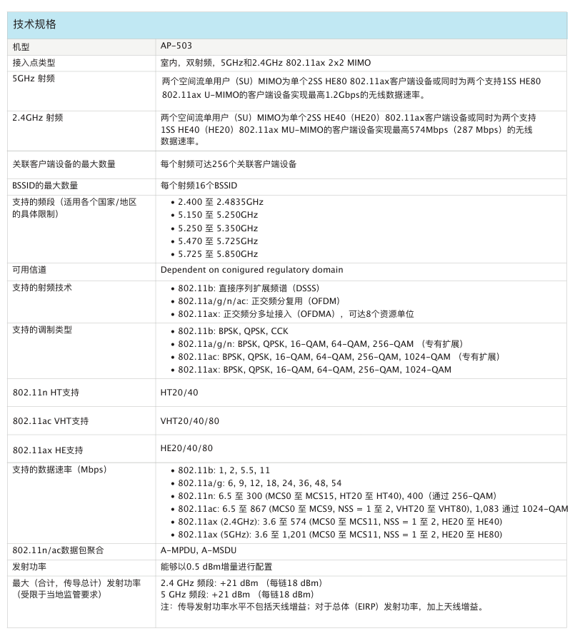 室内中密度Wi-Fi 6接入点AP-503给予兼具...